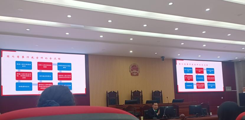 为深化法学专业实践教学改革,助力学生把握商事仲裁领域前沿动态,4月23日,法学院邀请安徽双睿律师事务所主任沈雪冰到学院作“商事仲裁法律实务前沿解析”专题讲座,法学院院长余为青,王书庵、李永成、刘佳丽等老师以及100多名同学参加了讲座。