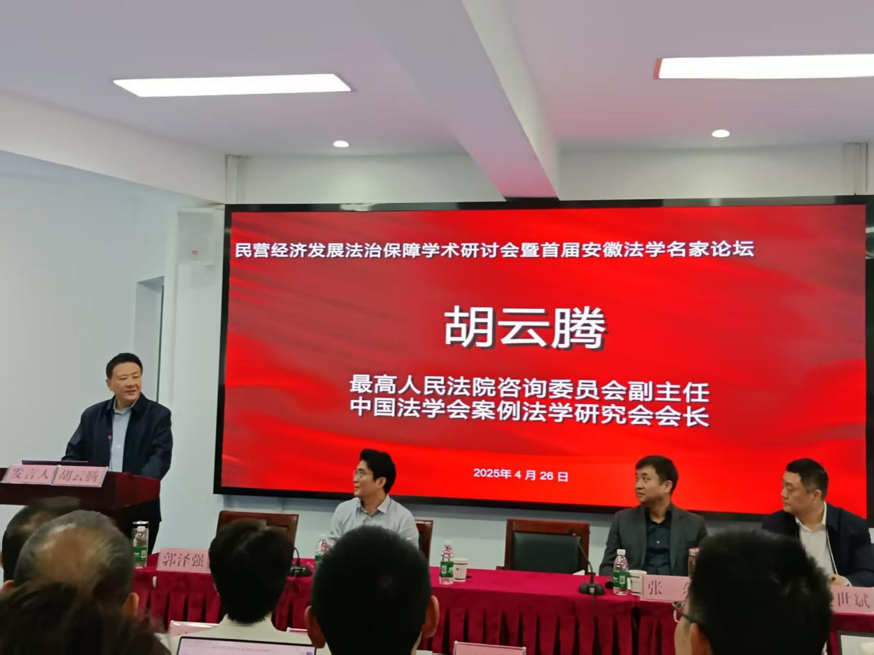 聚焦民企法治保障,共绘营商新蓝图。当日上午,由安徽师范大学与安徽省法学会联合主办的民营经济发展法治保障学术研讨会暨首届安徽法学名家论坛拉开帷幕。安徽师范大学副校长高峰、安徽省法学会专职副会长黄世斌、芜湖市委政法委书记张东,以及最高人民法院咨询委员会副主任胡云腾等嘉宾出席开幕式并致辞,强调法治环境对民营经济健康发展的支撑作用,为研讨会定下务实且前瞻的基调。