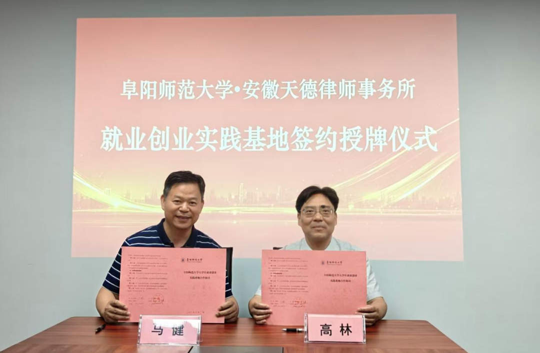 签约授牌仪式上,高林首先对马健的到来表示热烈欢迎。他强调,此次交流是搭建校所高效沟通桥梁的关键契机,必将有力推动双方的协同合作迈向新的高度。马健详细介绍了阜阳师范大学的发展历程以及法学人才培养规划,着重指出希望以阜阳师范大学法学院的学术资源为依托,与律所的实践优势紧密结合,共同培育优秀的法学人才。