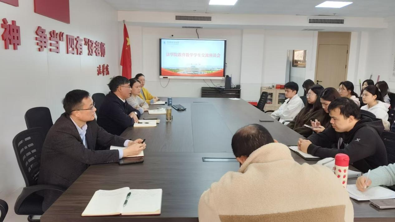 为深入了解学生学习需求,精准把握教育教学痛点,进一步提升人才培养质量,2025年11月3日,法学院在景行楼814会议室顺利举办教育教学学生交流座谈会。学院领导、各教研室主任、教务秘书与来自不同年级的学生代表齐聚一堂,以“面对面”的形式展开深度交流,共商学院教育教学发展大计。