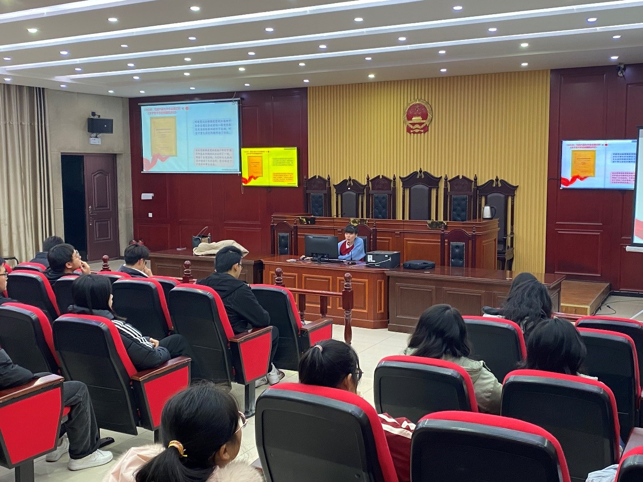 根据校团委统一部署,12月15日晚,学习贯彻党的十九届六中全会精神校团委青年讲师团报告会在西湖校区模拟法庭教室举行。校团委青年讲师团成员、医学院团委书记刘小夏作宣讲报告,法学院团委负责人李阿康主持报告会。