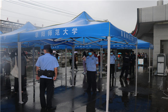 积极联动,全力保障。学校将本次考试安全和新冠肺炎疫情防控同安排、同部署、同落实,与市防控办、市交警大队、市城管局、市医疗机构、颍州区疾控中心等单位构建协同联动机制,共同发力,加强风险排查,完善安全预案,落实人员职责,保证工作到位。考试期间对考务工作人员实行集中管理,做到统一安排统一行动,确保涉考工作人员的健康与安全;严格落实考区封闭式管理,通过设置警戒线,安排专人把守等措施,将考生考前活动区域、考场所在区域与在校生住宿、餐饮等区域分开;做好大门进出通道的管控,严禁任何人带病进入办学场所,并现场设立医务小组、值班车辆、临时留观点、隔离考场等,配备充足的药物及医疗设备等。公安、交警、城管、疫情防控办与学校密切配合,科学应对,细化举措,精准施策,共同为考试筑起了一道牢固有力的安全屏障。