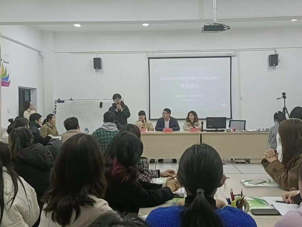3月17日晚,创新创业学院2023年第一期“创办你的企业(SYB)”创业培训班开班典礼在汉风楼B楼215创业培训教室举行。培训讲师徐朝东、刘小夏、李聪及59名培训学员参加开班典礼。