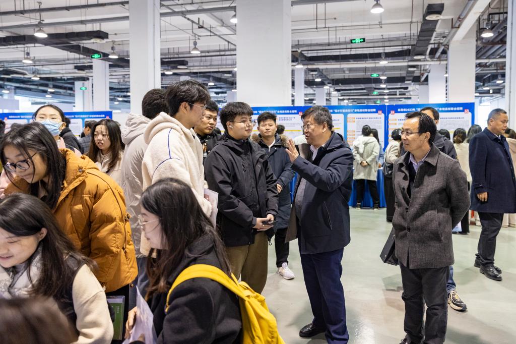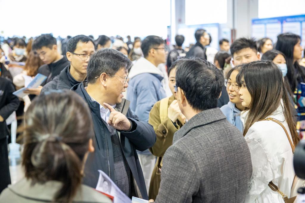 宣讲会后,胡明文、程曦来到联合招聘会现场,与用人单位和毕业生交流,了解毕业生就业意愿、就业现状、简历投递等情况;深入了解就业市场现状和招聘需求,希望用人单位能够从用人角度为高校人才培养和教育教学改革提出宝贵建议,为毕业生就业搭建更多更好的双向选择平台。