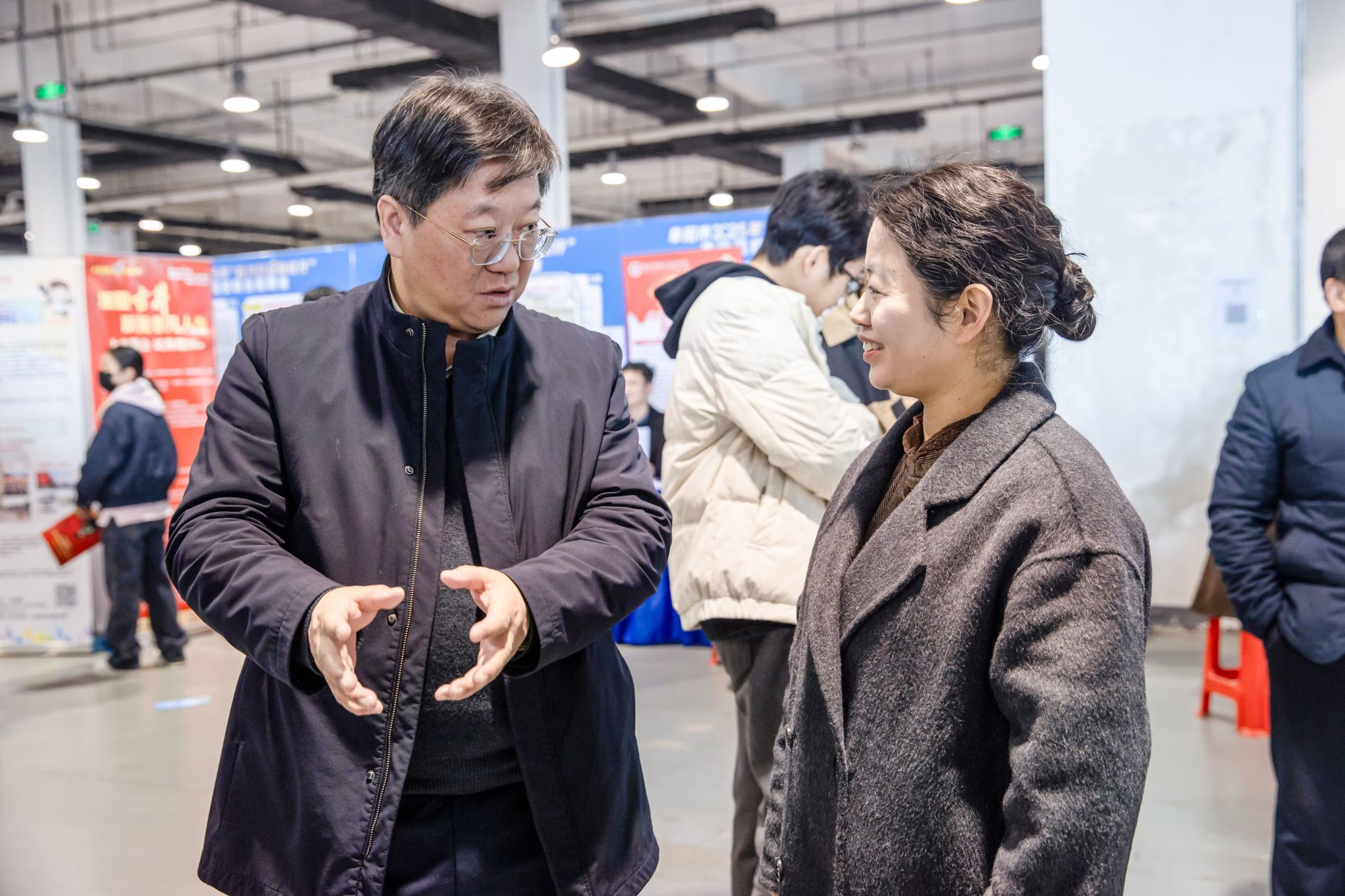 程曦与用人单位代表深入交流,详细了解行业发展趋势、人才需求结构及对我校毕业生职业能力的反馈,并对各单位长期以来支持学校就业工作表示感谢。他指出,学校始终坚持将毕业生就业摆在突出位置,持续深化校企合作、供需对接,期待与各界用人单位进一步拓展合作维度,共同打造协同育人、共赢发展的长效平台。在走访学生求职区域时,程曦与毕业生亲切交谈,询问求职进展与就业意向,勉励同学们树立正确择业观,把握当前招聘黄金期,展现阜师大学子扎实的专业素养和良好的精神风貌。