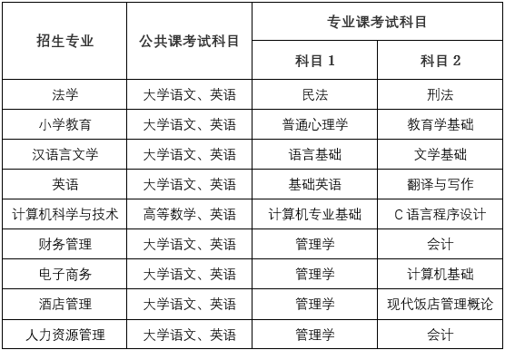 2. 考试形式:今年招生考试实行“2门公共课(各150分)+2门专业课(各150分)”的入学测试方式,考试科目分文理科,文科2门公共课为“大学语文+英语”,理科2门公共课为“高等数学+英语”,2门专业课为高职(专科)阶段所学专业课程。其中公共课实行联考,统一命题、统一时间、统一评分标准。