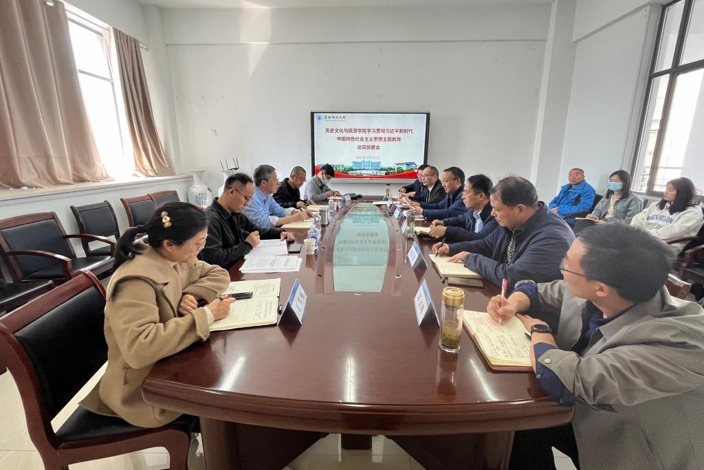 4月26日,历史文化与旅游学院在汉风B楼333会议室召开学习贯彻习近平新时代中国特色社会主义思想主题教育动员部署会。党委巡察工作办公室主任李兵帅、音乐舞蹈学院党委副书记马玉海到会指导。学院党委书记吴磊主持会议,学院班子成员、党委委员、科级干部、支部书记、支委委员参加会议。