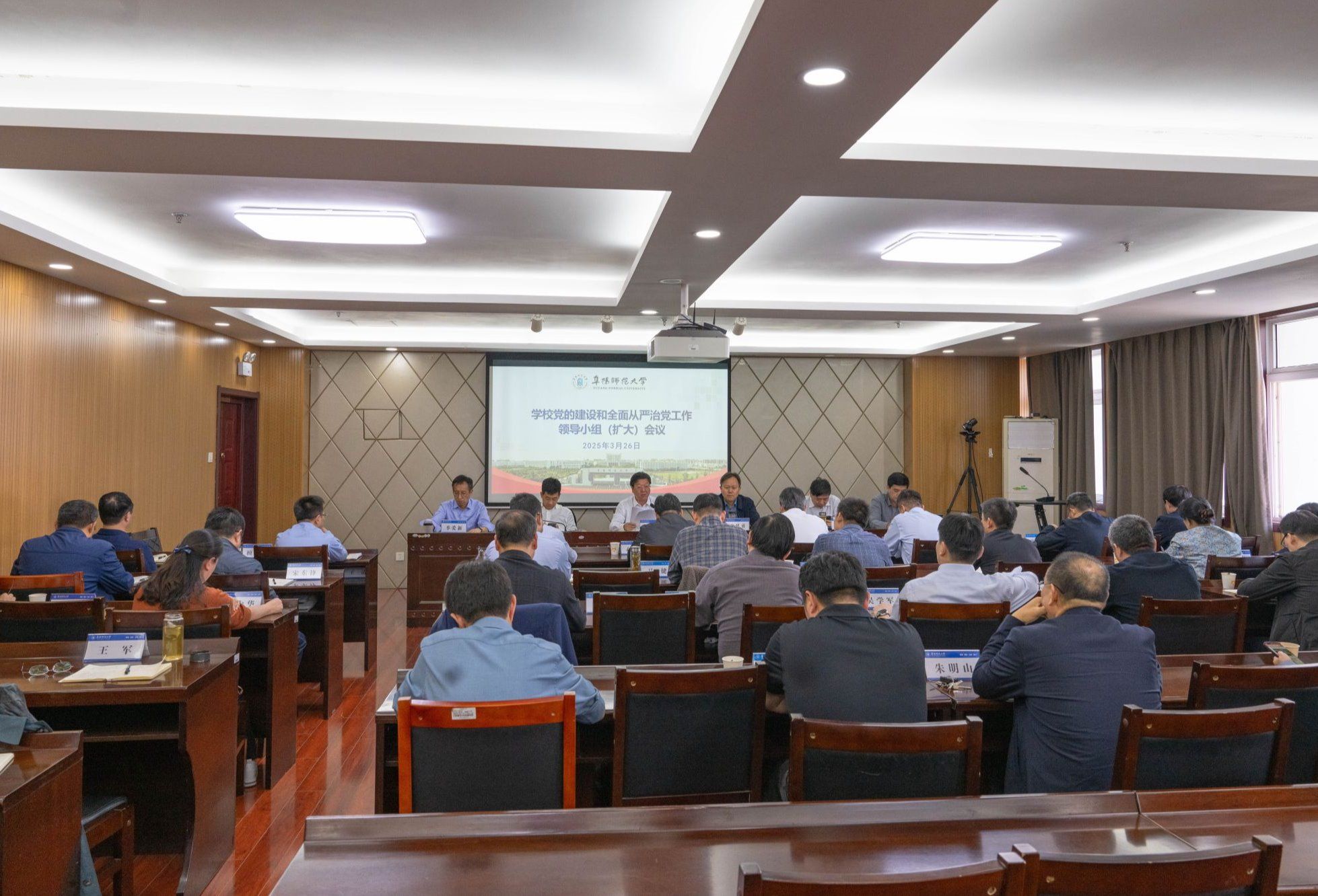 3月26日下午,学校召开党的建设和全面从严治党工作领导小组(扩大)会议,学习贯彻习近平总书记关于深入贯彻中央八项规定精神学习教育的重要讲话精神,对开展深入贯彻中央八项规定精神学习教育进行动员部署。在校校领导程曦、方廷勇、段相霖、张庆旭、季爱新、窦贤琨出席会议,学校党的建设和全面从严治党工作领导小组成员、各二级党组织主要负责人参加会议。会议由校党委书记程曦主持。