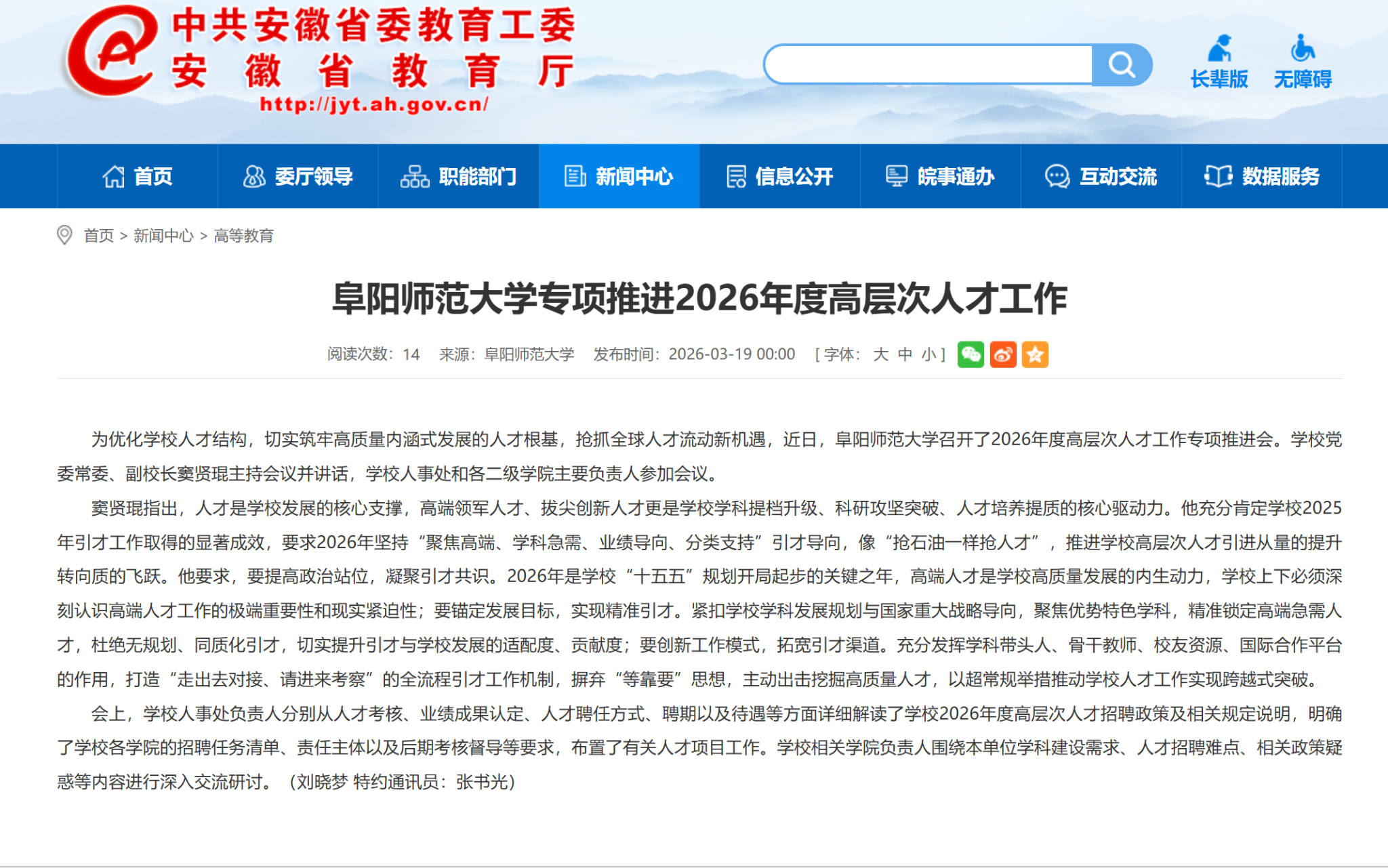 安徽教育网报道:阜阳师范大学部署推进新学期科研工作