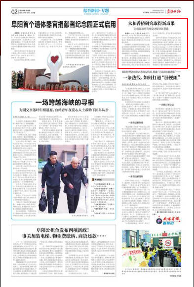 阜阳日报报道:太和香椿研究取得新成果 为创面治疗药物设计提供新思路