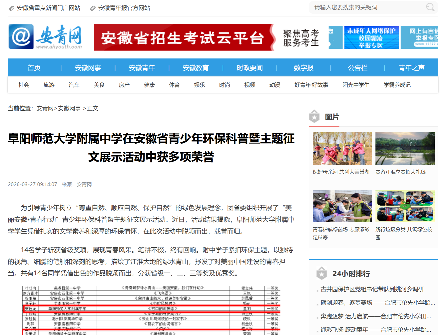 我校附属中学在安徽省青少年环保科普暨主题征文展示活动中获多项荣誉