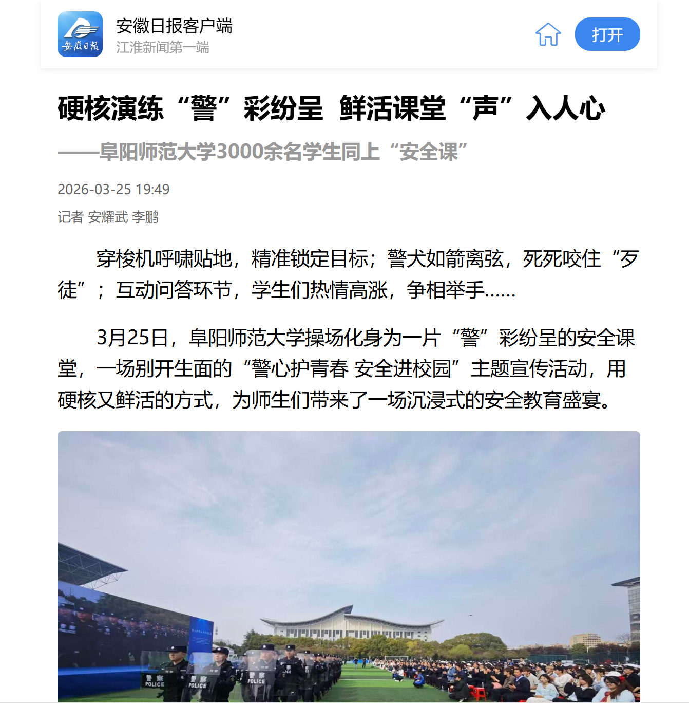 安徽新闻联播报道:阜阳师范大学师生积极学习《创新实干促发展》