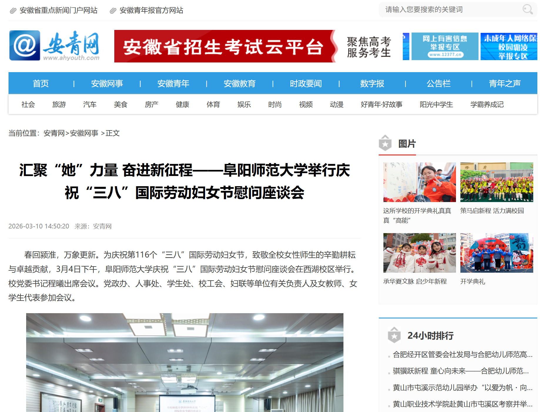 安青网报道:汇聚“她”力量 奋进新征程——阜阳师范大学举行庆祝“三八”国际劳动妇女节慰问座谈会