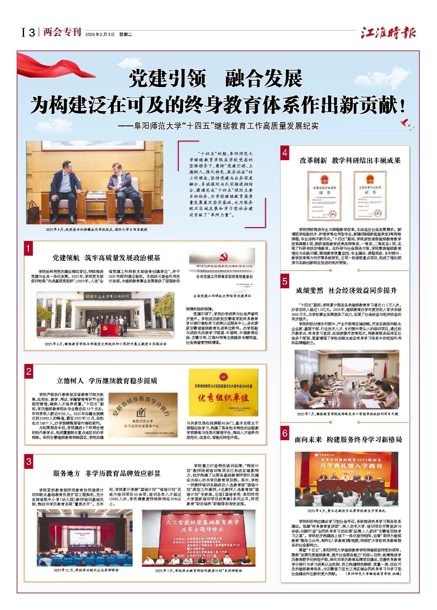 江淮时报报道:党建引领 融合发展 为构建泛在可及的终身教育体系作出新贡献!