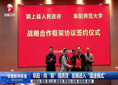 安徽新闻联播报道:阜阳师范大学牵手颍上县委县政府,齐心协力开展政产学研合作,取得新进展