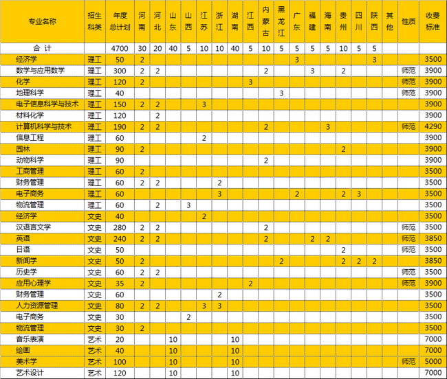 阜阳师范学院2010年分省(不含安徽省)分专业招生计划表