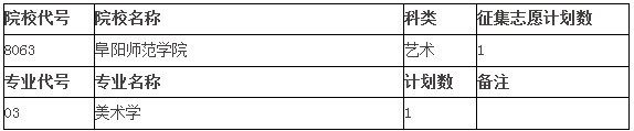 附:阜阳师范学院2010年艺术类第二批次(本科)征集计划