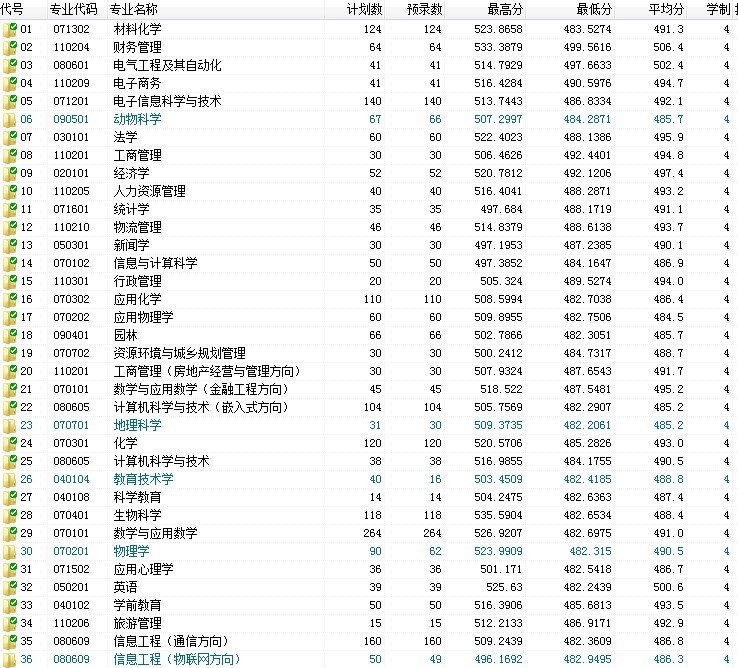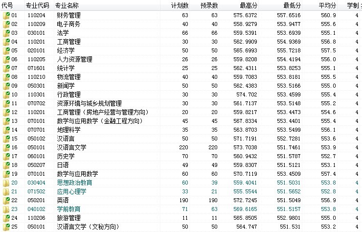分专业录取情况如下: