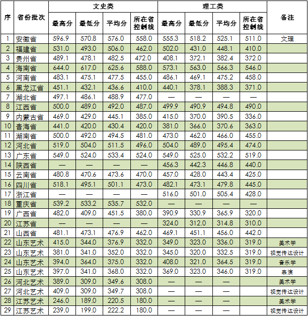 注:22-29为艺术类校考专业,录取原则是文化课达生源省批次控制线后,按专业课校考成绩录取。