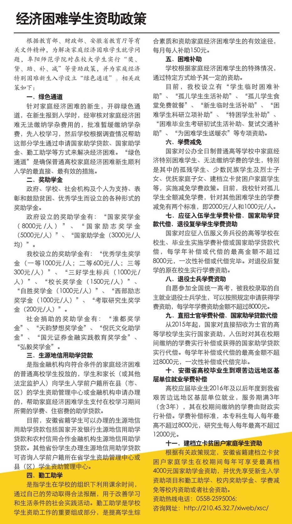 上一条:阜阳师范学院2018年招生简章:资助政策