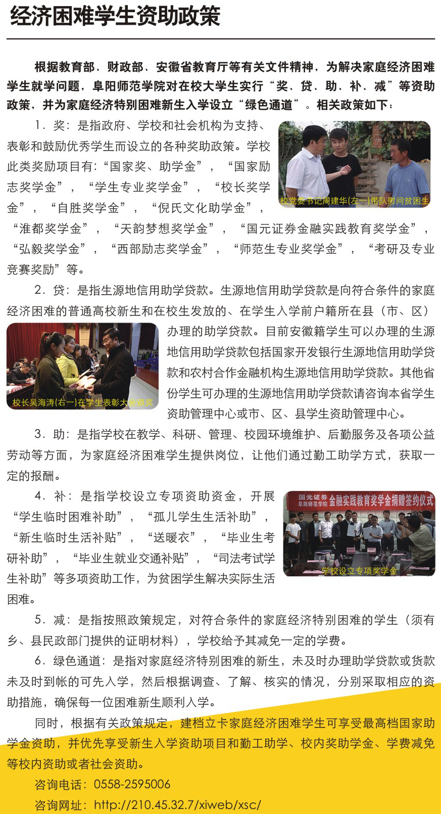 上一条:阜阳师范学院2017年招生简章:资助政策