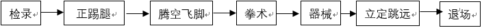 立定跳远、正踢腿、腾空飞脚、拳术、器械 |