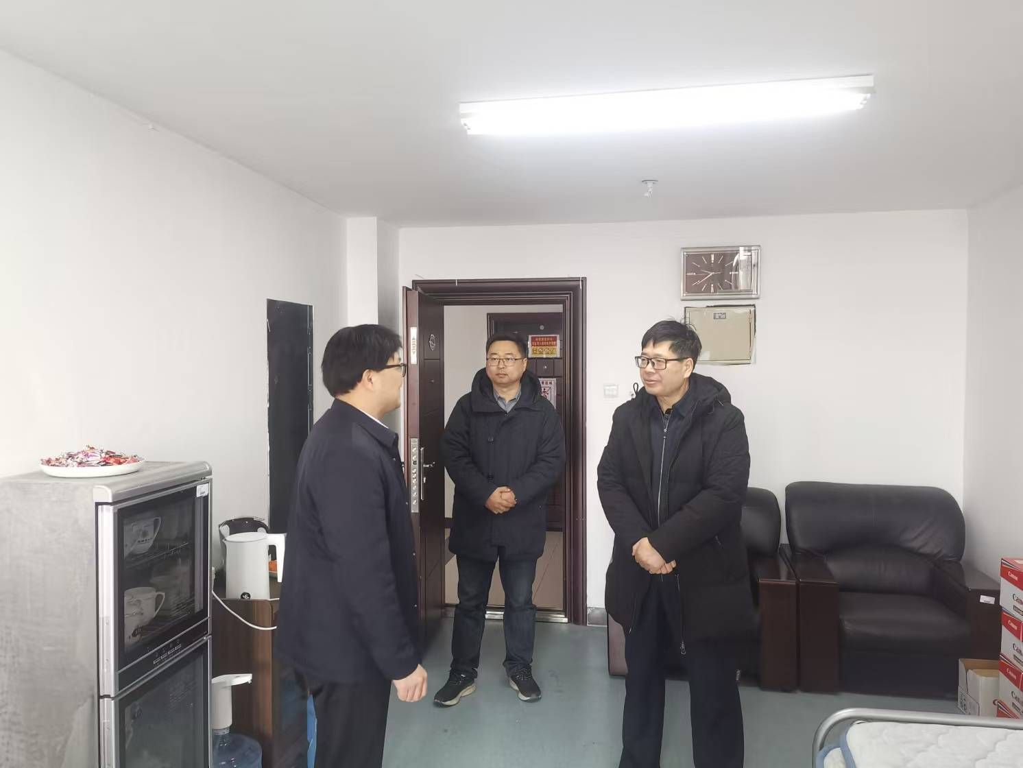 张庆旭一行先后来到校医院、物业、门岗、信息化中心、学校总值班室等场所看望慰问。每到一处都与坚守岗位的一线值班人员进行交谈,详细了解春节假期校园安全、服务保障等相关工作安排,关切询问值班人员工作和生活情况,对他们恪尽职守、辛勤付出表示衷心感谢。张庆旭叮嘱大家要合理安排值班值守,注意防寒保暖,切实做好防火、防盗及用电安全工作,确保春节期间校园的正常运转和安全稳定。