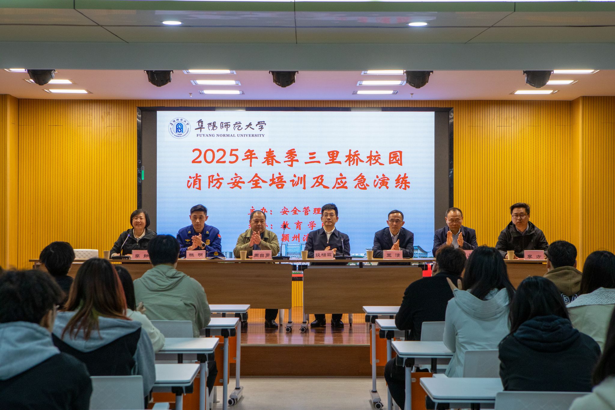 为了进一步提高全体师生的消防安全意识和正确处置消防突发事故的能力,4月2日,我校举办了2025年春季三里桥校园消防安全培训及应急演练活动,本次活动由安全管理处主办,教育学院承办,颍州区消防救援大队协办。校党委副书记段相霖到会指导。颍州区消防救援大队党委委员陈明、宣讲员张层层,我校党委宣传部、安全管理处、文学院、马克思主义学院相关负责人,校安全管理处消防科全体人员,驻校安保公司消防人员以及教育学院、文学院、马克思主义学院师生代表共200余人参加此次培训及应急演练活动。培训演练活动由教育学院党委书记李静主持。