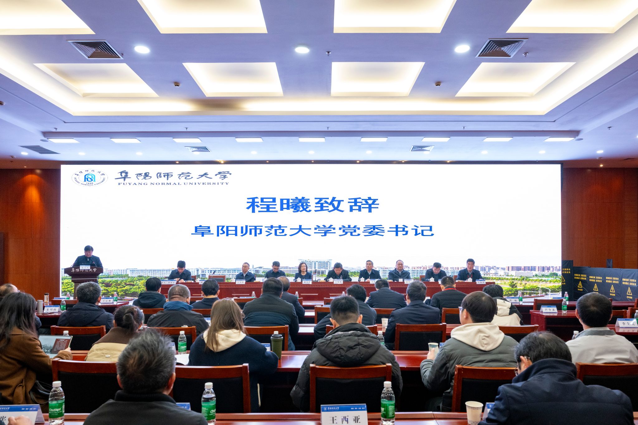 为深入学习贯彻习近平总书记关于党的建设的重要思想,进一步推进新时代中共党史党建学学科建设,3月15日,阜阳师范大学中共党史党建研究院成立大会暨中共党史党建学学科建设研讨会在我校体育中心举办。会议由校马克思主义学院、安徽省中国特色社会主义理论体系研究中心阜阳师范大学研究基地承办。来自北京师范大学、中央财经大学、复旦大学、山东大学、上海大学、南京师范大学、安徽大学等高校近两百名师生参加了会议。安徽省教育厅思政处处长王后林、校党委书记程曦出席开幕式并致辞。开幕式由校党委副书记段相霖主持。