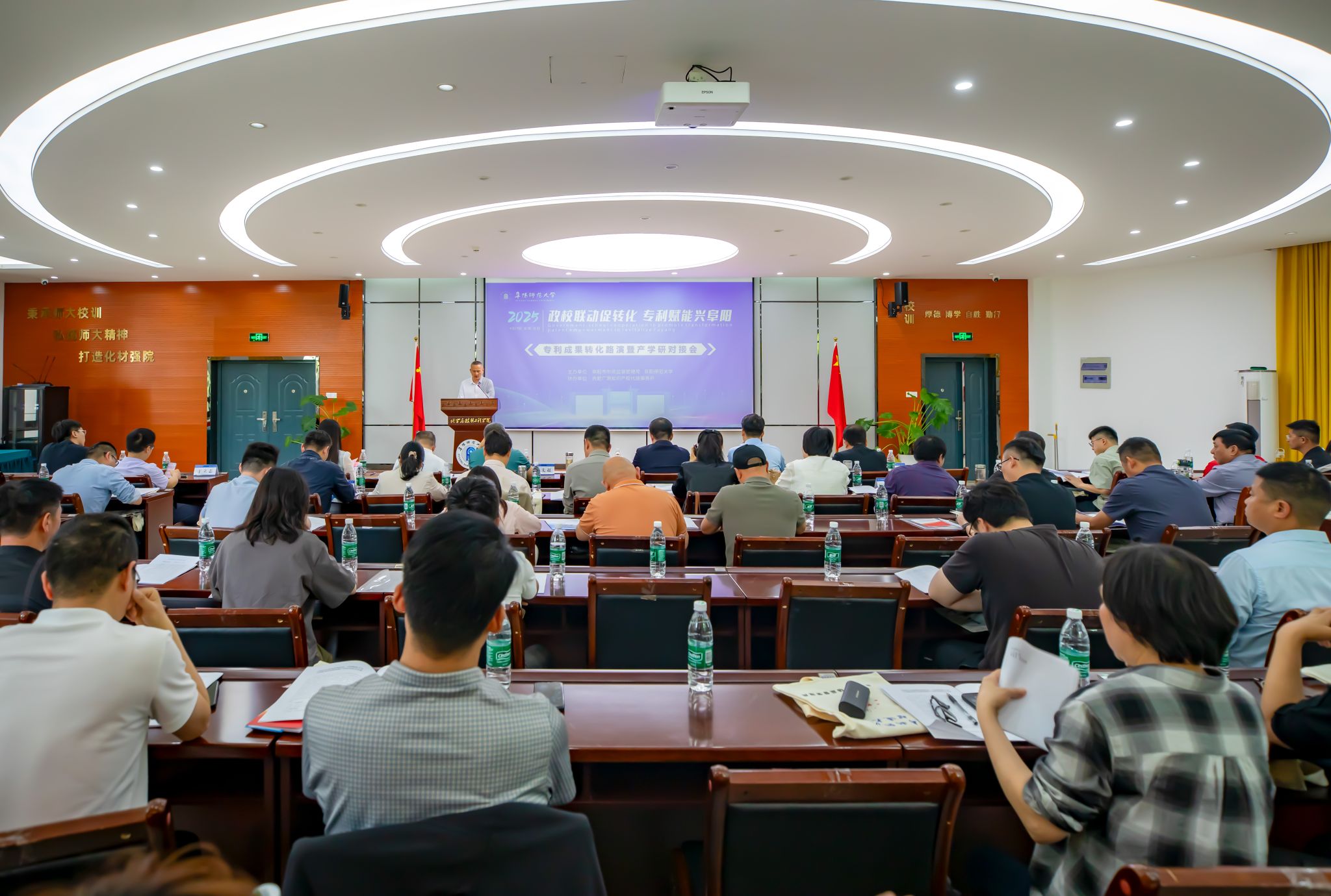4月29日,我校与阜阳市市场监督管理局联合主办的成果转化路演暨产学研对接会在西湖校区举行。本次活动的主题为“政校联动促转化、专利赋能兴阜阳”。校党委常委、副校长窦贤琨,阜阳市市场监督管理局党组成员、副局长姚彬出席活动并致辞。阜阳市各县市区、阜阳经开区市场监督管理局负责人,受邀的市内外企业家以及我校物理与电子工程学院、化学与材料工程学院、生物与食品工程学院、数学与统计学院、计算机与信息工程学院、阜阳医学院的科研人员代表等100余人参加活动。