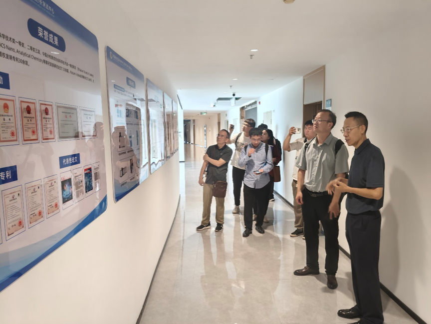 随后,双方研究人员参观了分析测试中心,黄行九研究员详细介绍了分析测试中心的成立背景、职能定位、实验室布局及先进仪器设备。分析测试中心于2025年7月建成,拥有近5000平方米标准化实验室,配备多维全息-三重四极杆液质联用系统、吹扫捕集-气相色谱质谱联用仪、电感耦合等离子体质谱仪等高端设备,致力于环境污染物的检测、识别与风险评估研究。