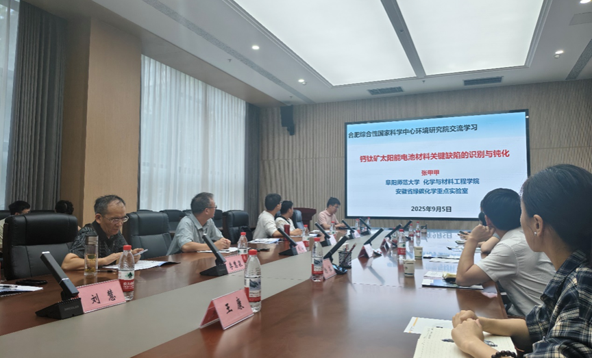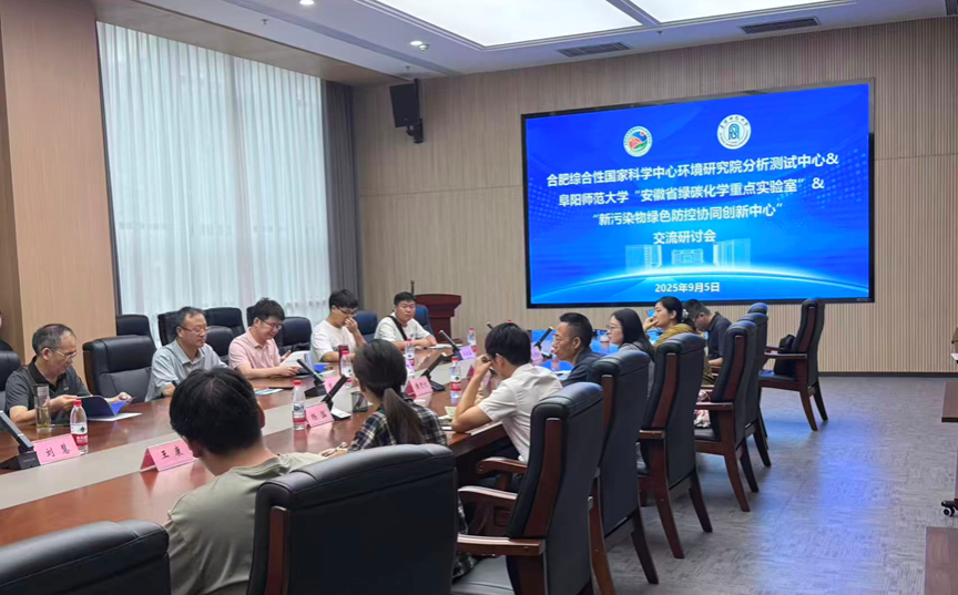 为进一步深化“新污染物绿色防控协同创新中心”的实质性建设,加强在环境污染防控与检测、绿色化学研究等前沿领域的战略合作,9月5日,我校安徽省绿碳化学重点实验室(以下简称“绿碳重点实验室”)副主任武海教授率领学术骨干团队一行,专程前往合肥综合性国家科学中心环境研究院分析测试中心(以下简称“环境研究院分析测试中心”),开展了一场富有成效的交流研讨会。此次活动旨在推动双方科研资源共享、人才联合培养及协同创新,为区域乃至国家的生态环境保护与绿色低碳发展贡献智慧力量。会议由环境研究院分析测试中心主任黄行九研究员主持。