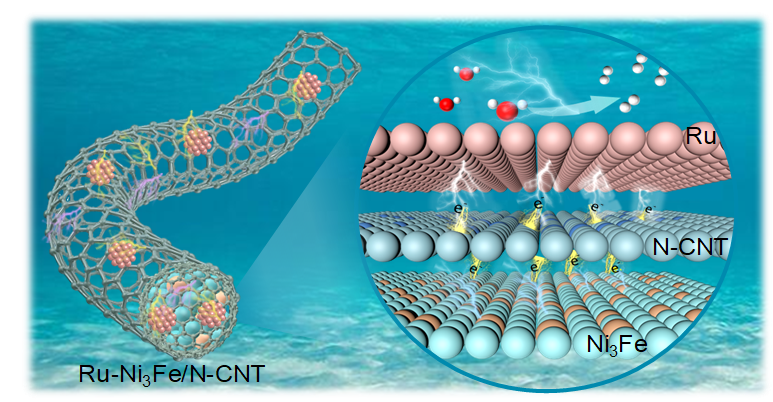 原文链接:Embedding ultrasmall Ru nanoparticle catalytic sites on Ni3Fe encapsulated carbon nanotubes for efficient and durable water-splitting - ScienceDirect