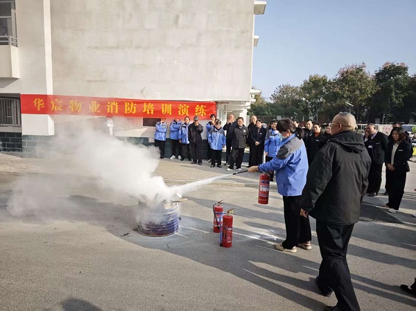 为增强物业服务人员消防安全意识,提升员工安全保障综合素质,11月14日下午,后勤管理与基本建设处组织西湖校区华宸物业公司楼卫、楼长、保洁、工程维修和管理层员工等服务人员在二区南场地开展消防培训和现场实操演练。