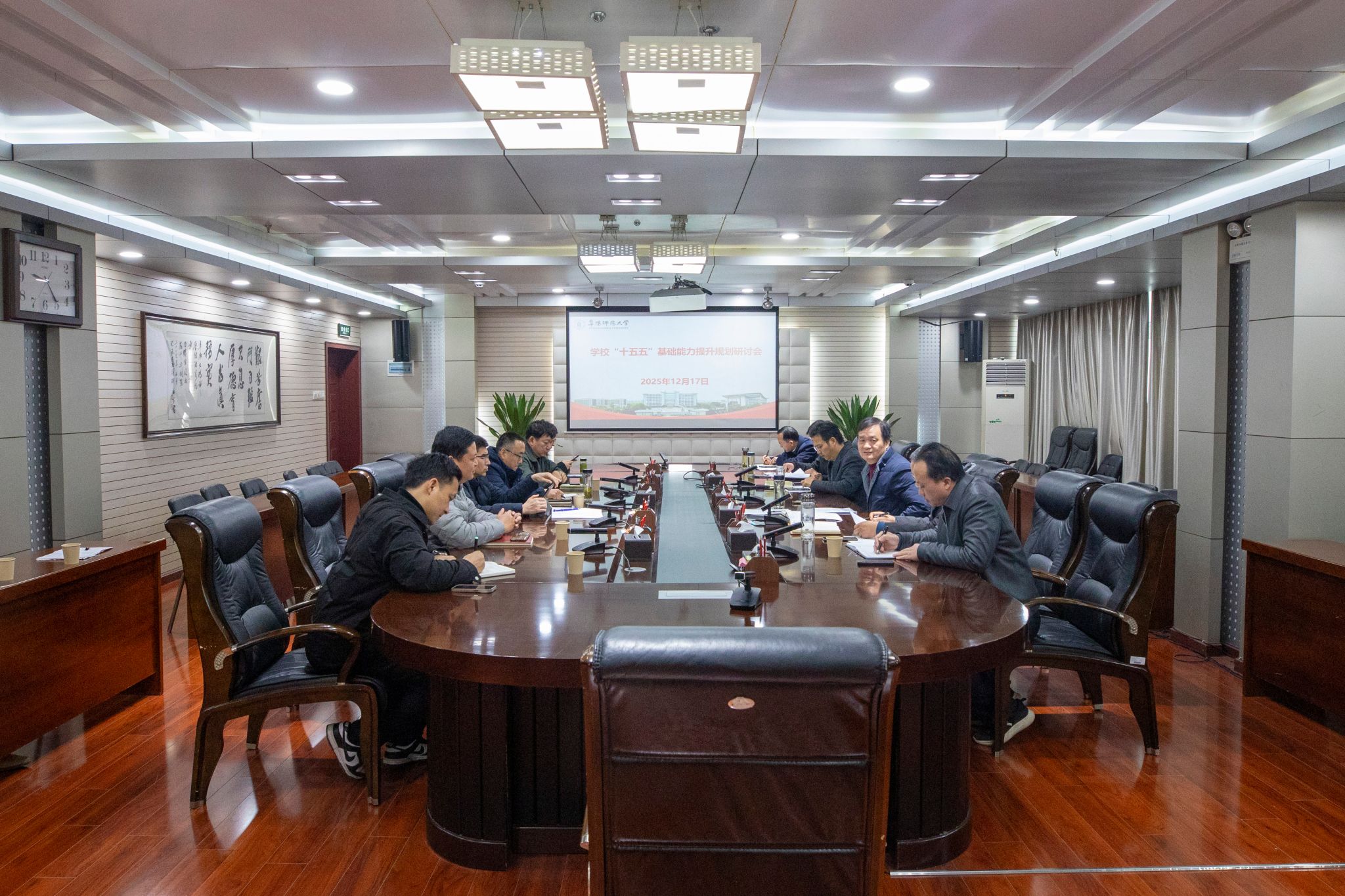 为科学编制“十五五”基础能力提升规划,12月17日上午,学校在西湖校区正行楼1202会议室召开“十五五”基础能力提升规划研讨会。校党委常委、副校长卢少求出席并主持会议。党政办公室、党委宣传部、发展规划处、学生工作处、财务处、安全管理处、国有资产管理处、后勤管理与基本建设处、文学院、商学院、美术学院、生物与食品工程学院等单位有关负责人参加会议,共同为编制好学校未来五年的基础能力提升规划凝聚智慧、建言献策。