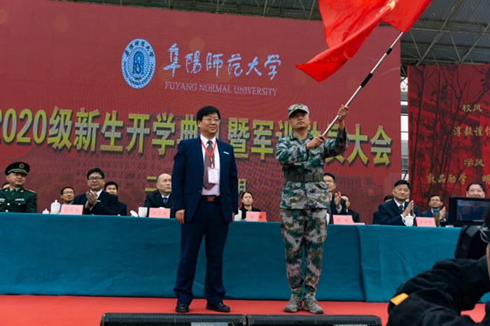 2020级新生开学典礼暨军训动员大会在现场师生齐声歌唱《阜阳师范大学校歌》的歌声中圆满闭幕。