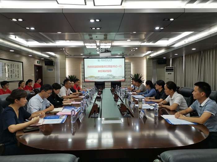 8月26日下午,团省委党组成员、副书记郑兰荣一行来我校就共青团工作进行调研,阜阳团市委副书记王静陪同调研。我校党委副书记周峰会见了郑兰荣一行。