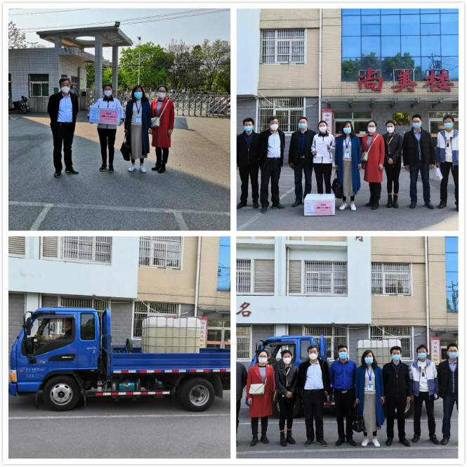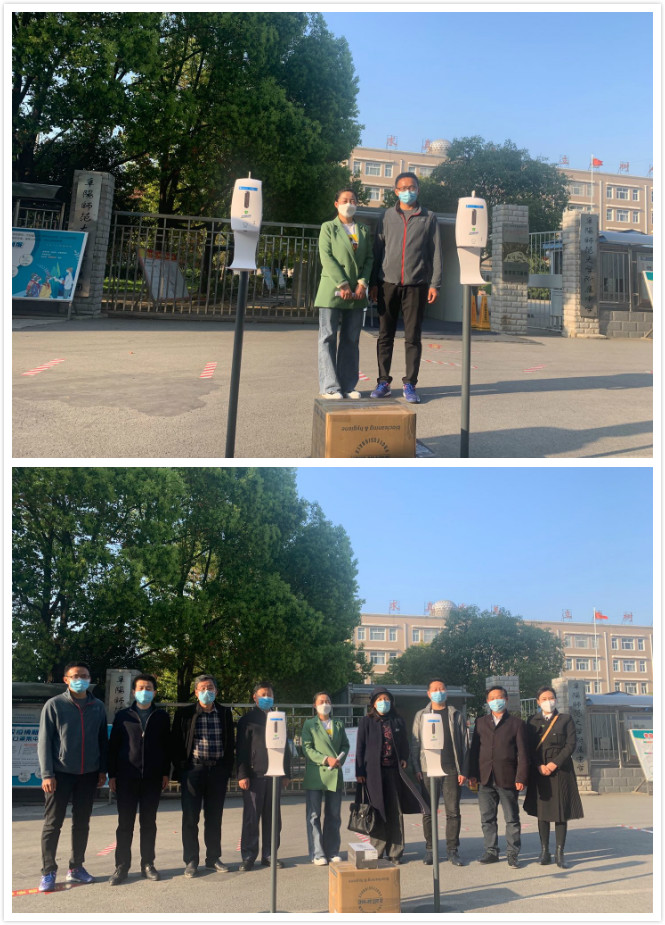 4月12日上午,九(6)班刘博宇家长代表孩子向学校捐赠防护服一箱、移动电子感应消毒机、新加坡进口消毒液。