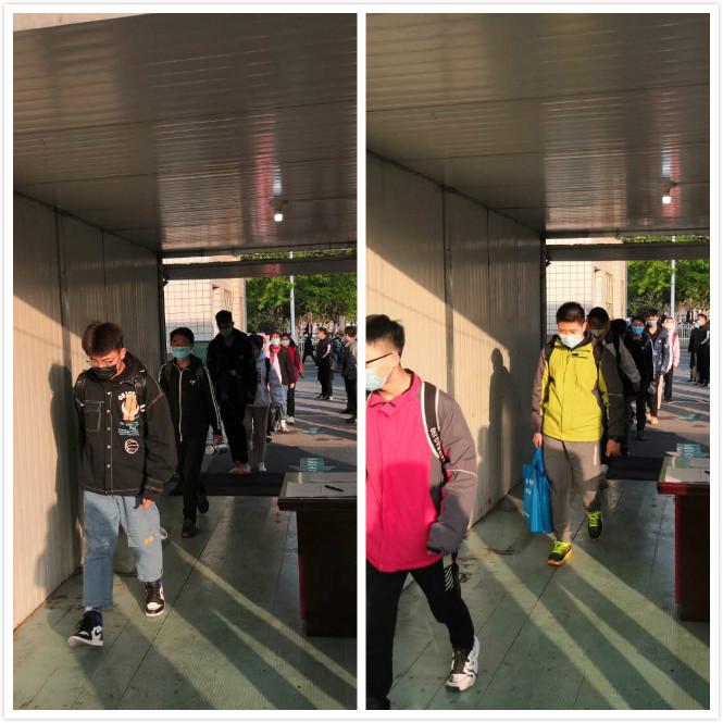 为降低疫情风险、保证安全入学,在做好防护的同时,师大二附中初三年级各班实行错峰进校。学生提交健康证明和承诺书、使用免洗洗手液洗手、门口测温、按照指定路线有序进入教学楼。学生进班前由班主任再次测温并做好登记、消毒进班就座,这些动作看着繁琐,但在开学前学校早已经过一遍又一遍的演练和修改,整个过程井然有序。做完一系列要求,学生们便进入了阔别许久的教室,开始了漫长寒假过后在学校的第一次学习。