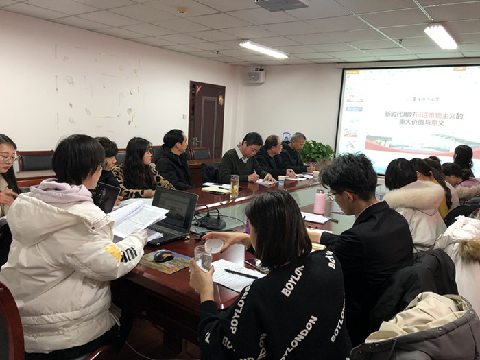 2020年1月6日晚7点,在正行楼912会议室,阜阳师范大学马克思主义学院举办第二期“马克思主义经典著作读书会”。本期读书会研读的篇目为习近平总书记2015年1月23日在十八届中央政治局第二十次集体学习时的讲话《辩证唯物主义是中国共产党人的世界观与方法论》。此次读书会邀请到继续教育学院院长梁家贵教授、马克思主义学院院长闫成俭教授、王西亚博士莅临指导。读书会由马克思主义学院2019级硕士研究生马荣花主持。