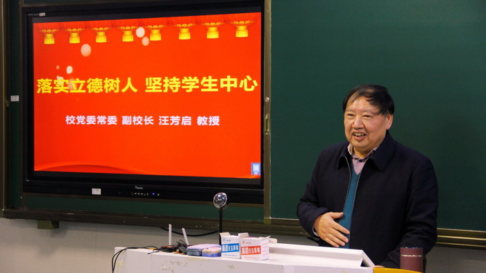 汪芳启以“落实立德树人,坚持学生中心”为题为新教师作首场专题辅导报告。他从新时代高等学校落实“立德树人”根本任务出发,通过全面学习分析习近平总书记关于“立德树人”的重要论述和对人民教师的寄语,引导新教师深入学习领会习近平的教育观,从使命、职责、学术与能力等方面理解“四有”好老师的标准和要求。他勉励新教师以民族复兴和国家富强为己任,以培养社会主义事业的合格建设者和接班人为使命,勇于承担塑造灵魂、塑造生命、塑造人的教书育人职责,立志成为塑造学生品格、品行、品味的“大先生”。他指出,落实“立德树人”根本任务的关键是落实好学生中心地位,要按照新时代高等教育“40条”要求,对标人才培养方案,坚持OBE理念,瞄准学生成才需求来设计教学,增强育人意识,不断提升教学效果,实现“三全育人”。