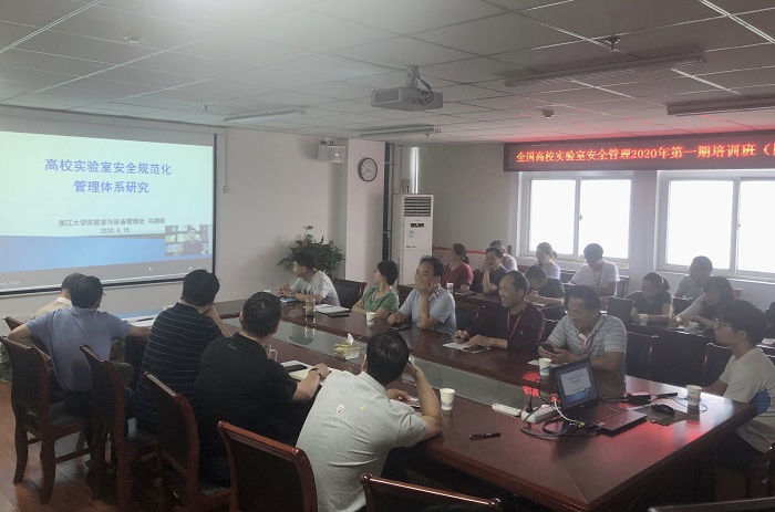 6月15日下午,浙江大学实验室与设备管理处处长冯建跃教授以“高校实验室安全规范化管理体系研究”为主题,介绍了目前高校实验室安全形势并通报了近期发生的典型安全事故案例,重点解读了《教育部关于加强高校实验室安全工作的意见》,详细阐述了高校实验室安全管理体系架构包括安全制度建设、安全检查与隐患整改。6月19日下午,南京航空航天大学国有资产管理处处长王勤教授以“应急预案与演练的实践”为主题,就应急预案的编制要求,应急演练的组织实施与实践进行了详细阐述,强调了应急预案的制定和实施是实验室安全管理的关键措施。