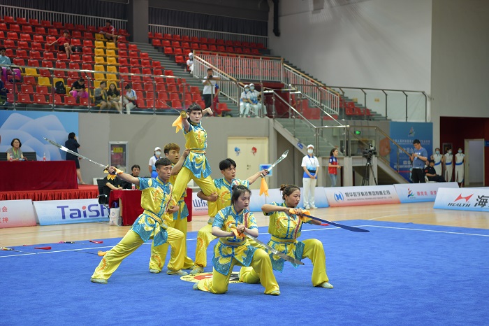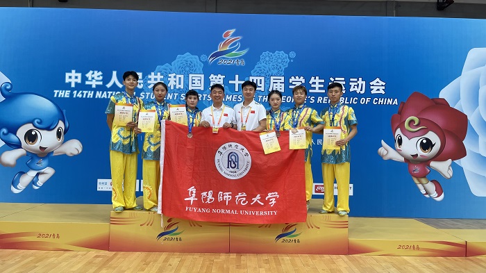 7月9日-13日,本届运动会武术比赛在青岛第十九中学举行,来自全国各地共33支参赛队的212名运动员参与比赛角逐。我校武术队在汝雷、叶云两位老师指导下,刻苦训练,对套路结构严密编排、精益求精。由王俊强、王国栋、徐磊、王然、孙孝文、范敬宇等6名学生参加的集体项目,队员们配合默契、动作整齐划一,超水平发挥出竞技水平,以9.60分获得铜牌,实现了我省在全国学生运动会上武术比赛集体项目奖牌零的突破。另外,男子对练获第四名,女子对练和男子自选剑术获第七名,均为近年来我校最好成绩。
