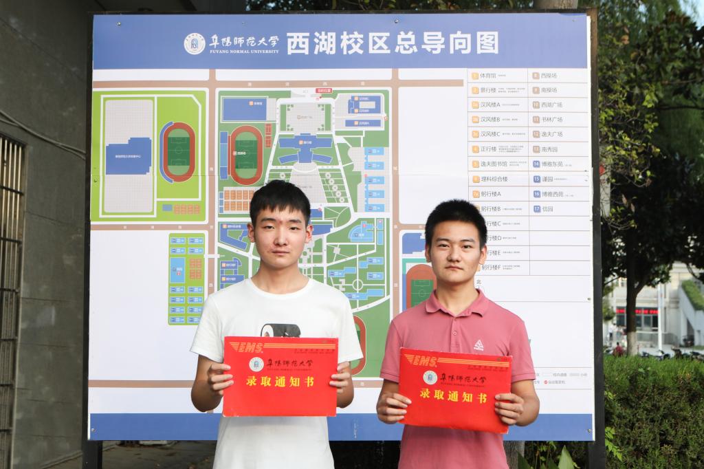 一对来自蚌埠市五河县小溪镇新村的双胞胎兄弟刘浪和刘先博今年同时考进了阜阳师范大学,当被问到同时选择这里的原因时,他们告诉记者:“我们希望在陌生的环境里可以相伴前行、相互依靠、共同进步。”除此之外,记者了解到哥哥对电气工程比较感兴趣,弟弟未来更想成为一名数学教师,经过综合考量,他们认为阜阳师范大学办学历史悠久、学风浓厚,最终选择了阜阳师范大学电气工程及其自动化和数学与应用数学(师范)专业。