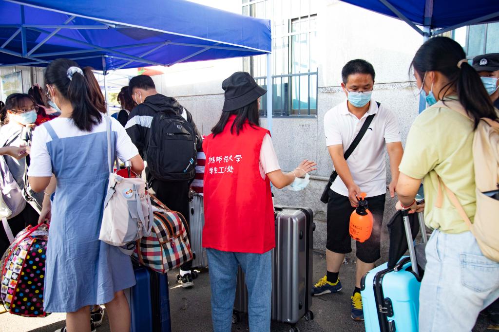 为了保障全校师生的安全和疫情防控工作的顺利展开,志愿者们坚守迎新“一线”,进行体温检测、对行李进行消杀。生物与食品工程学院徐高骁老师说:“对入校学生进行测温并对行李进行消毒杀菌的工作,在疫情期间是最重要的一关,目的是让我们的学生安全入校,安心的生活学习。”