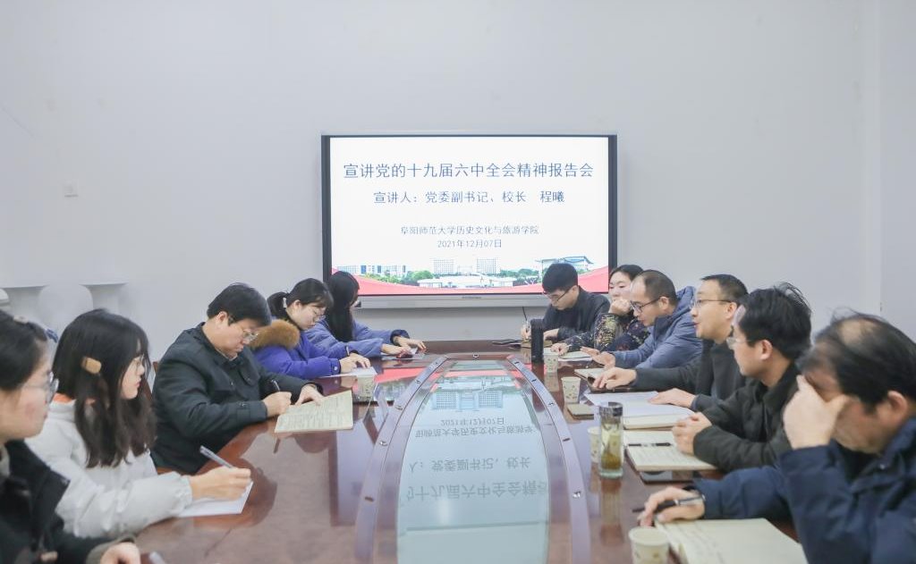 12月7日下午,校党委副书记、校长程曦深入历史文化与旅游学院宣讲党的十九届六中全会精神。该院党政班子成员、支部书记及地理系学生党支部党员参加报告会。