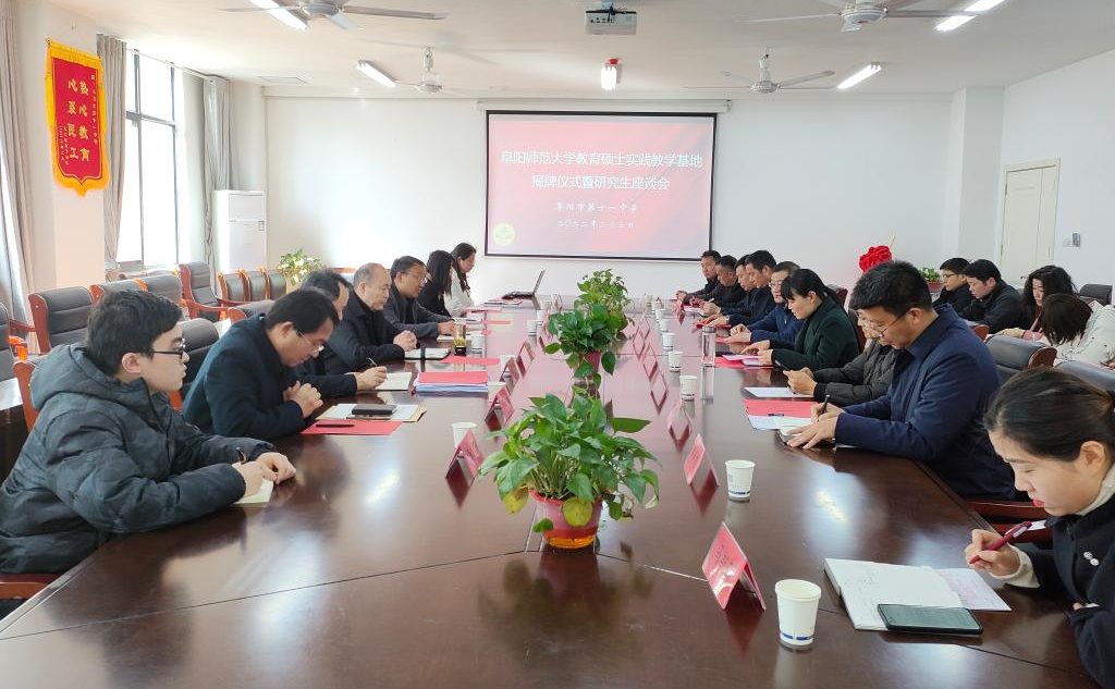 3月3日上午,校党委常委、副校长李文雍赴阜阳市第十一中学,参加教育硕士实践教学基地揭牌仪式暨研究生座谈会。颍东区副区长沙学珍,颍东区教育局党组书记、局长颜明辉,阜阳市第十一中学校长黄文明和我校研究生处、历史文化与旅游学院等单位负责人和教师代表、研究生代表参加活动。