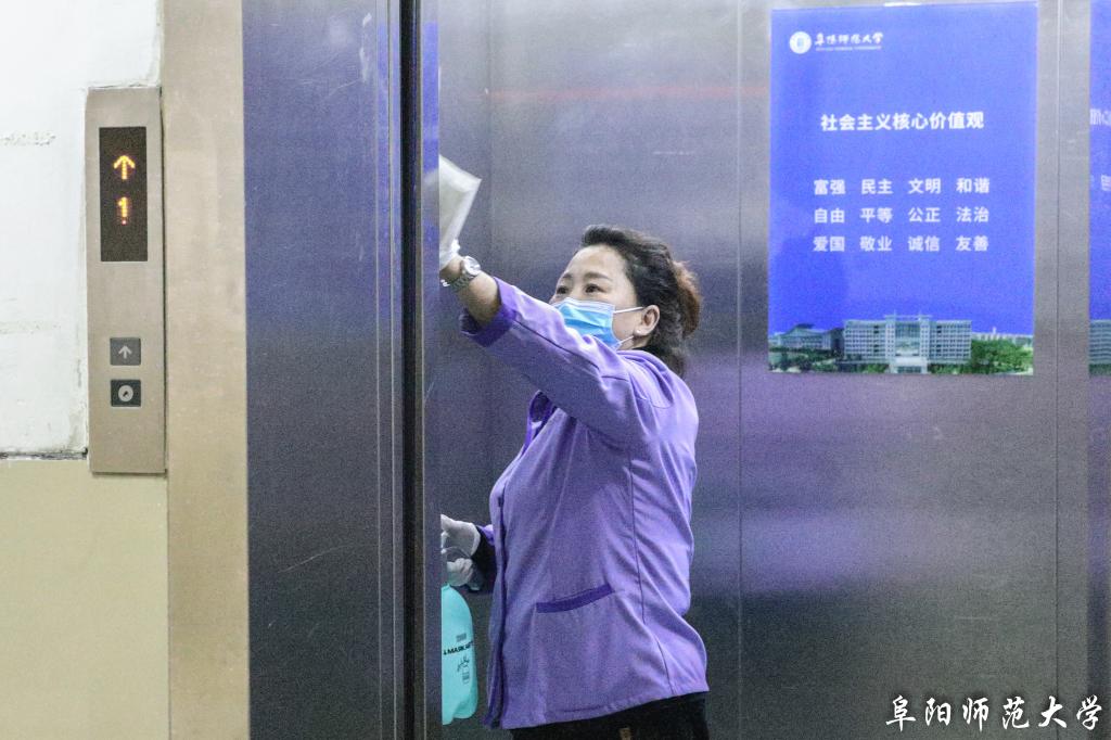 学校西湖校区一区三栋的宿舍管理员袁素侠说:“自学校开始疫情管控以来,我们每天除了常规的宿舍管理、检查,还定时给回寝室楼的学生进行消毒。有时候看到学生出门没戴口罩,我也会及时提醒。现在孩子们的健康安全是第一位的。”