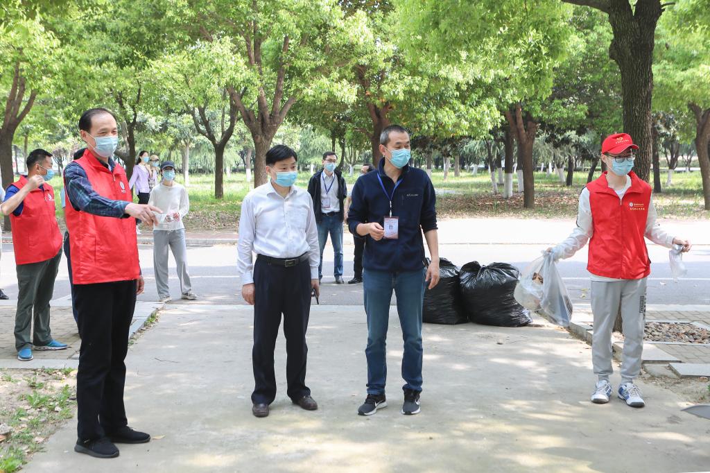 “谢谢同学们,大家辛苦了!同学们利用周末参加志愿活动,既能丰富疫情防控期间的校园生活,又可以发挥主人翁精神,为争创国家级文明校园做贡献。希望大家以后多参加这样的活动,上好‘第二课堂’‘思政课堂’。”校党委副书记涂红松走到志愿者中间,不停地给同学们鼓劲、打气。