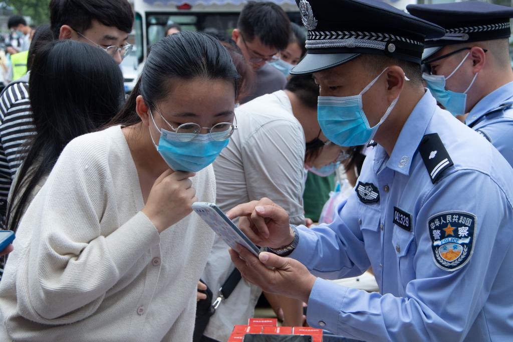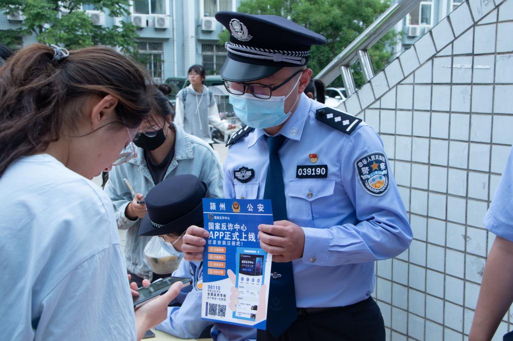 5月26日,校保卫处联合阜阳市颍州公安分局、江淮义警、颍西派出所开展反恐怖、反电诈宣传教育进校园活动。